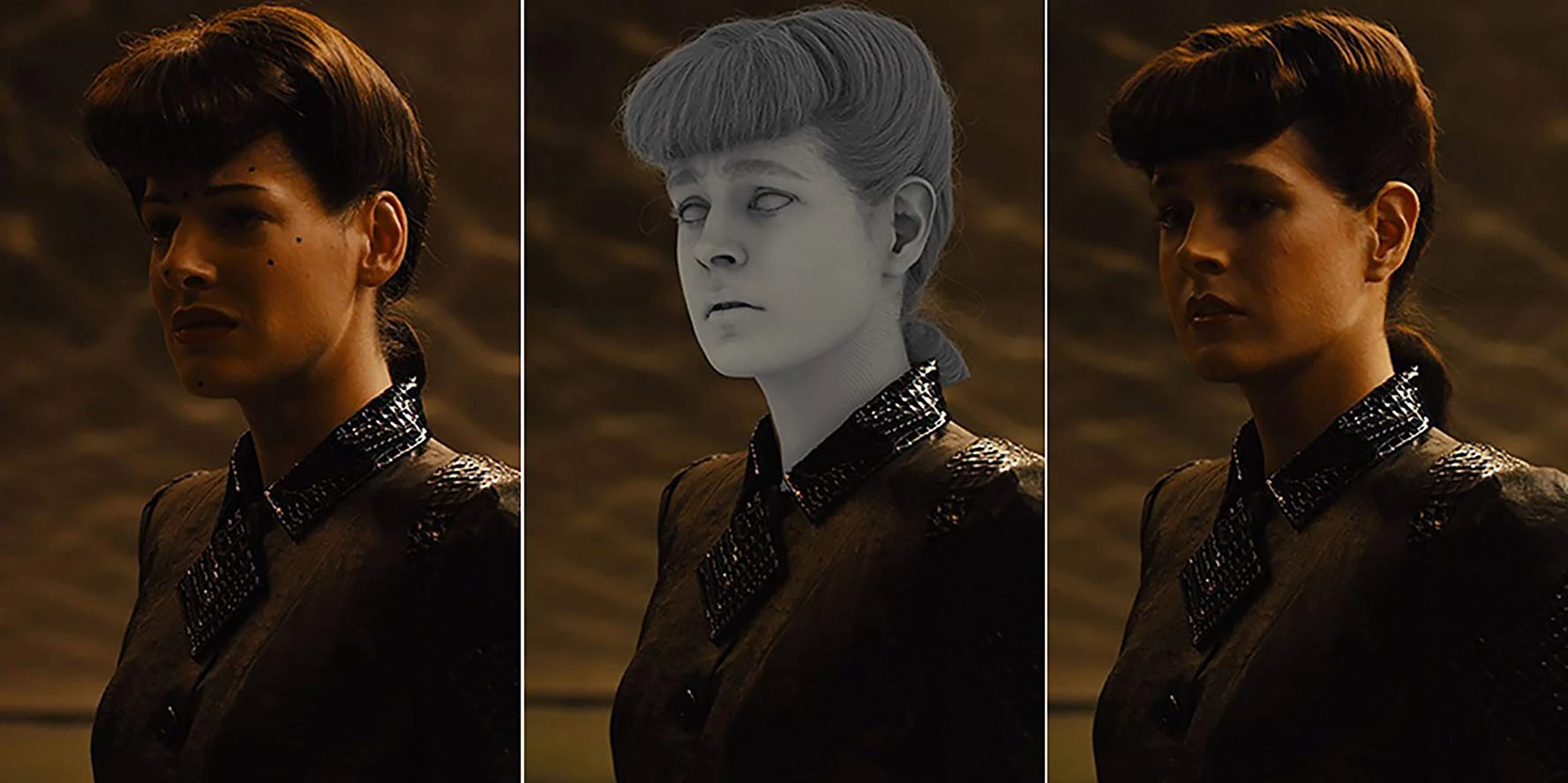 In a task that took a year to achieve, the likeness of a youthful Sean Young was superimposed over Peta's through the use of CGI. The digital model of Young's head was based on photos and footage of the actress in the original film and other films she appeared in during the same era, such as Dune.[3]