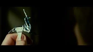 In any event, the origami seems to be made of chewing gum wrapper which is foil on one side and paper on the other. It has been said that this hints at the organic and mechanical nature of a replicant.