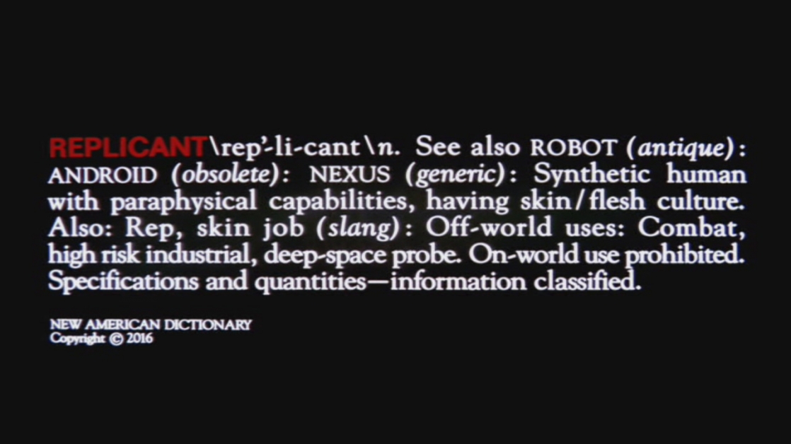 A definition for replicant seen only in the workprint